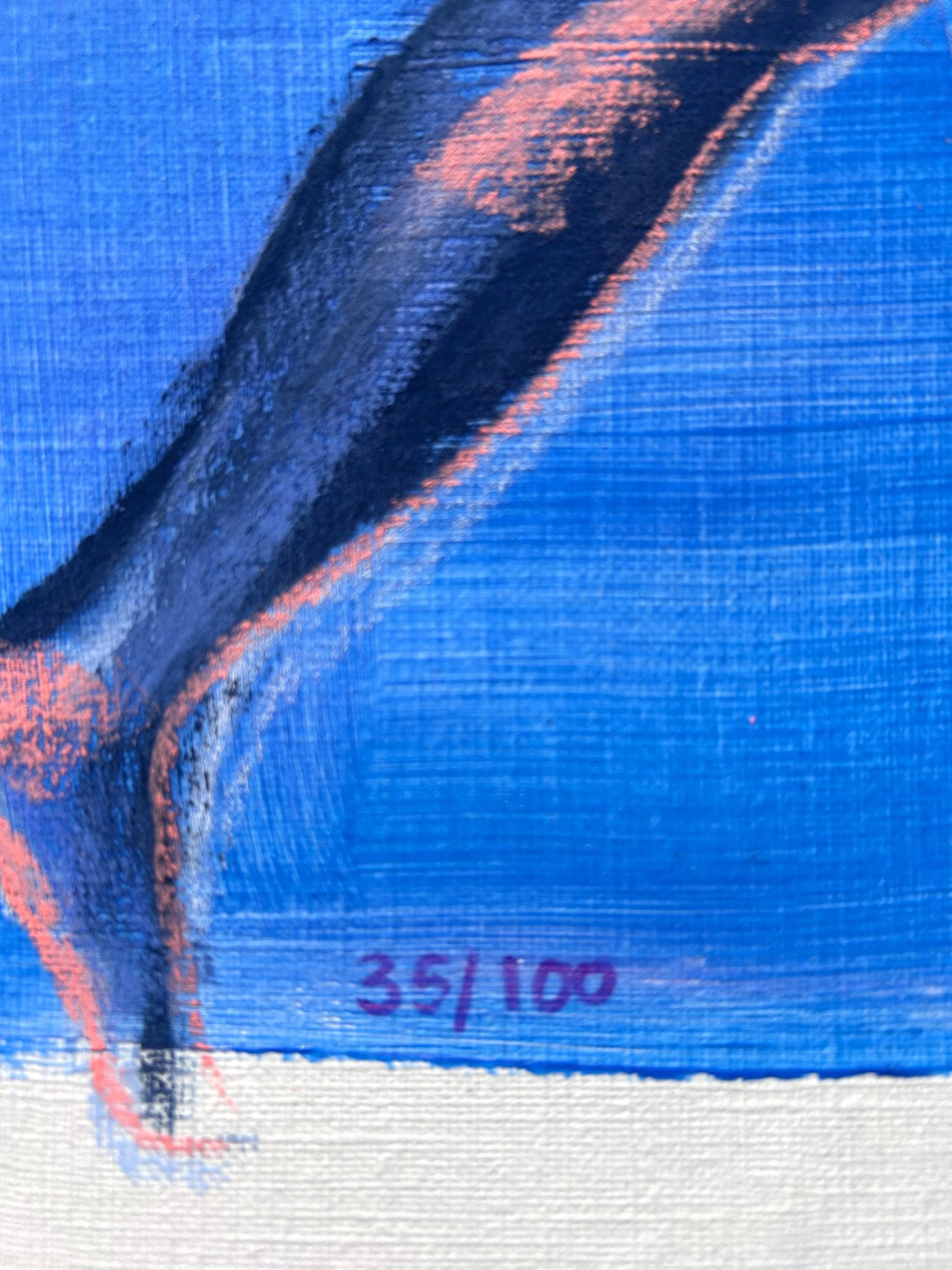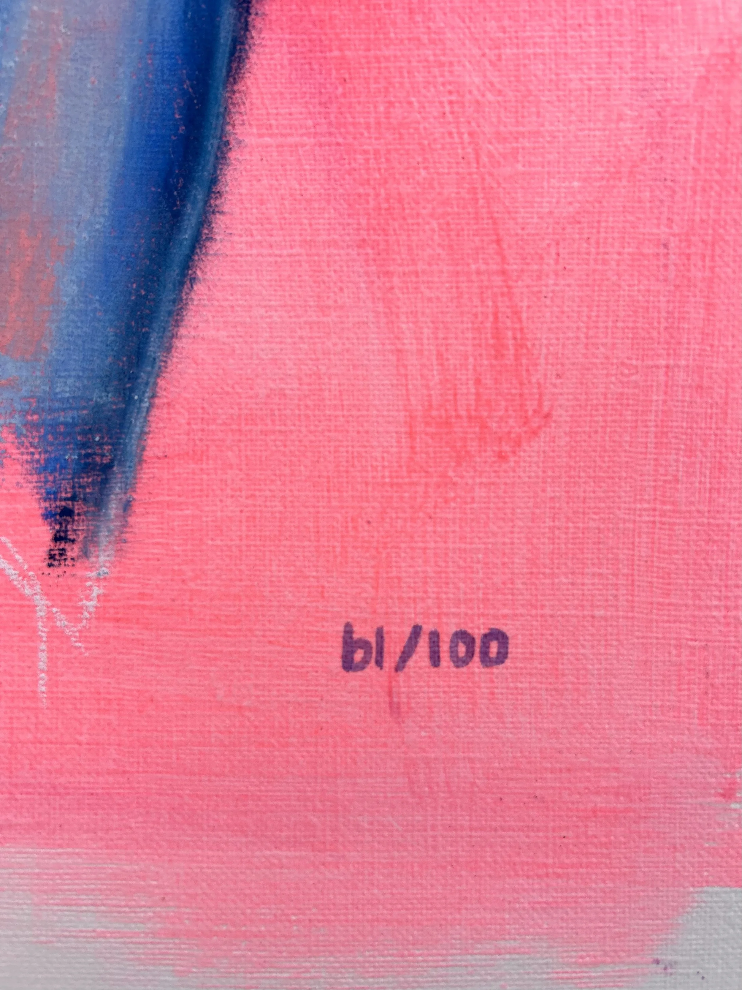 • In many of my pieces, I use soft pastel as a medium, which is notoriously hard to fix to canvas. Each work is sprayed with the most effective fixatif, but even that does not fully adhere the pastel to canvas. The pieces should be treated with care, as even with the fixatif, they will still smudge, if you rub your fingers against them. I recommend framing my pieces behind glass or plexiglass.